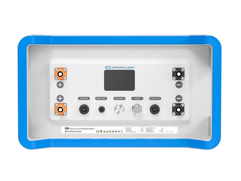 Akumulátor E60 je navržený tak, aby jeden tento akumulátor byl schopný plnohodnotně pohánět elektromotor ePropulsion NAVY 3.0. (pro NAVY 6.0 jsou potřeba baterie 2 a je potřeba dokoupit propojovací kabel)