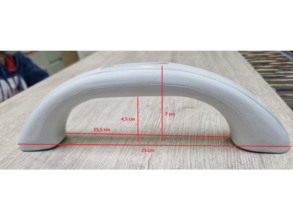 Madlo k našroubování do pevné laminátové nebo hliníkové lodě, nebo člunu. Délka 25 cm (19,5 cm je délka od šroubu ke šroubu).