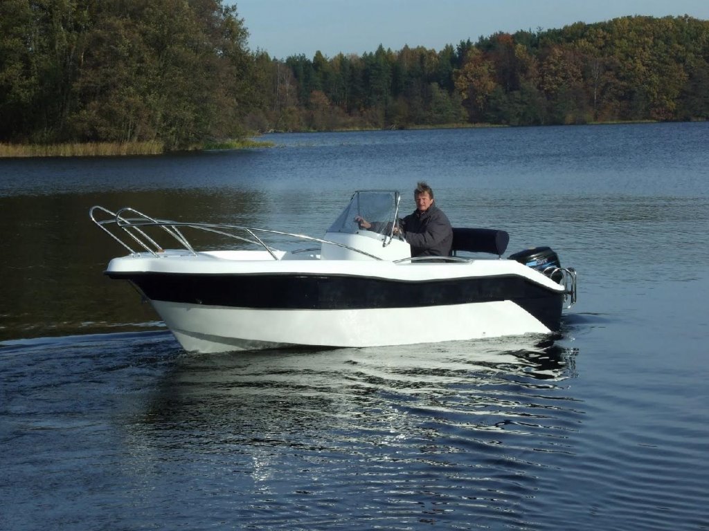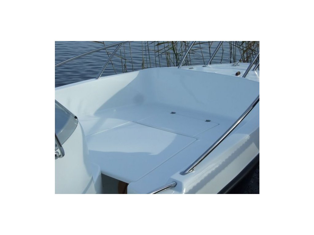 Základní výbava: bílá barva, zábradlí, čalounění skai ( imitace kůže ) na vnější straně, dálkové řízení, nerezový žebřík s dřevěnými schůdky, plastový volant, sun deck, vazáky, samovypouštěcí kokpit.