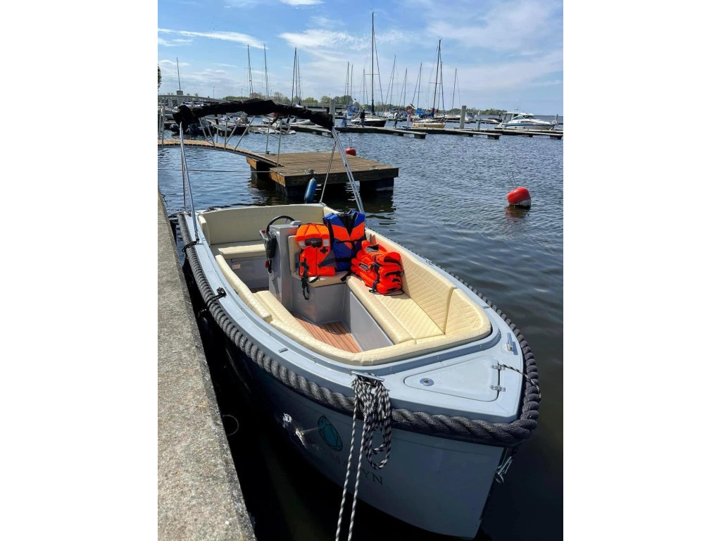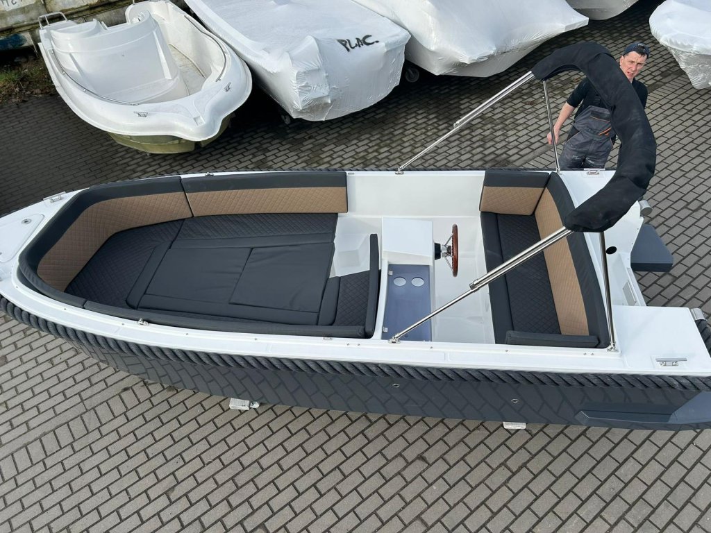 Motorový člun BT 485 je loď určená pro 5 osob. Pohodlná přední sedadla s rozkládací sluneční palubou a zadní lavicí umožňují pohodlnou plavbu po pobřežních vodách, jezerech a kanálech.