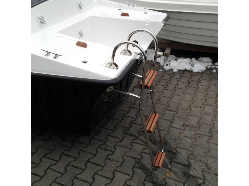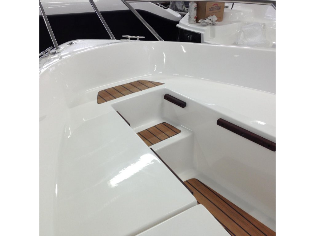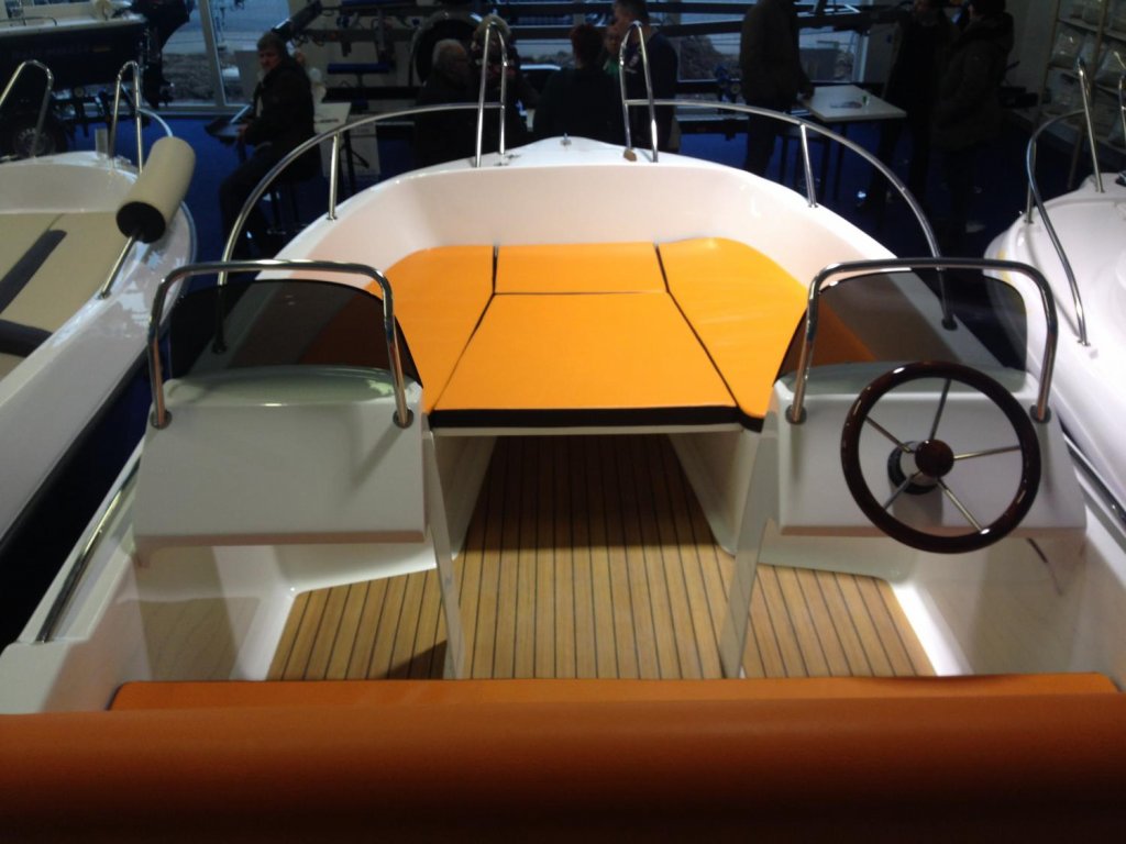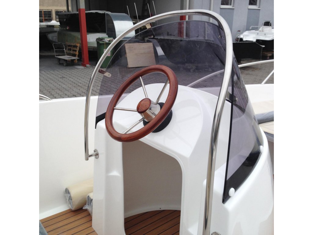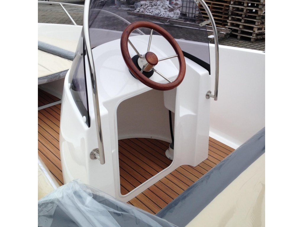 Základní výbava: bílá barva, zábradlí, čalounění skai ( imitace kůže ) na vnější straně, dálkové řízení, nerezový žebřík s dřevěnými schůdky, nerezový volant, sun deck, vazáky, samovypouštěcí kokpit,