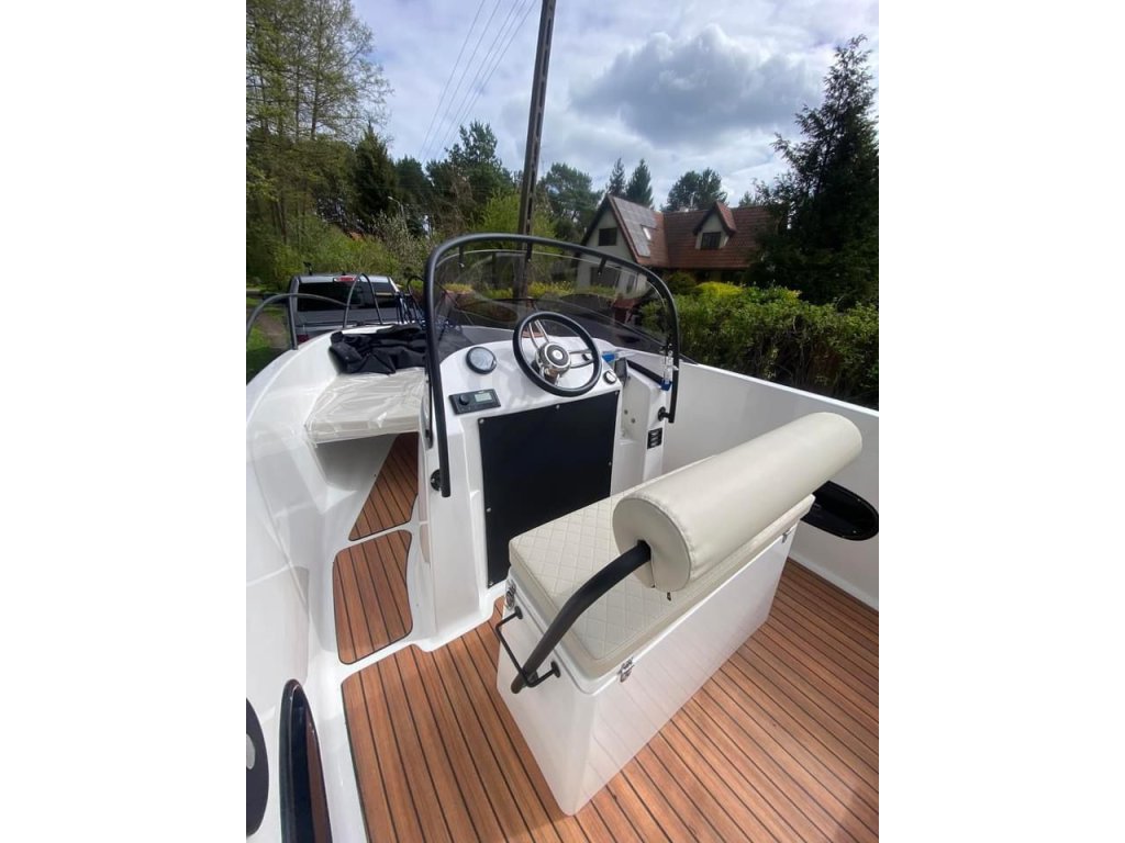 Příplatková výbava: možnost v jiném barevném provedení, hydraulický systém, nerezová nebo plastová palivová nádrž, navigační osvětlení, sportovní nebo dřevěný volant, imitace teaku, bimini, přepravní plachta, sundec, provaz kolem lodi, rádio + repro, křeslo pro kapitána