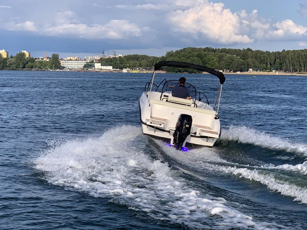 Motorový člun BT 560 Open - loď s otevřenou palubou a pohodlným přístupem na záď a příď lodě. Hluboký a prostorný kokpit. Umístěný ovládacího panelu zaručuje snadnou komunikaci. Loď doporučujeme pro relaxaci s rodinou na řece, vodní sporty, turistiku a rybaření.