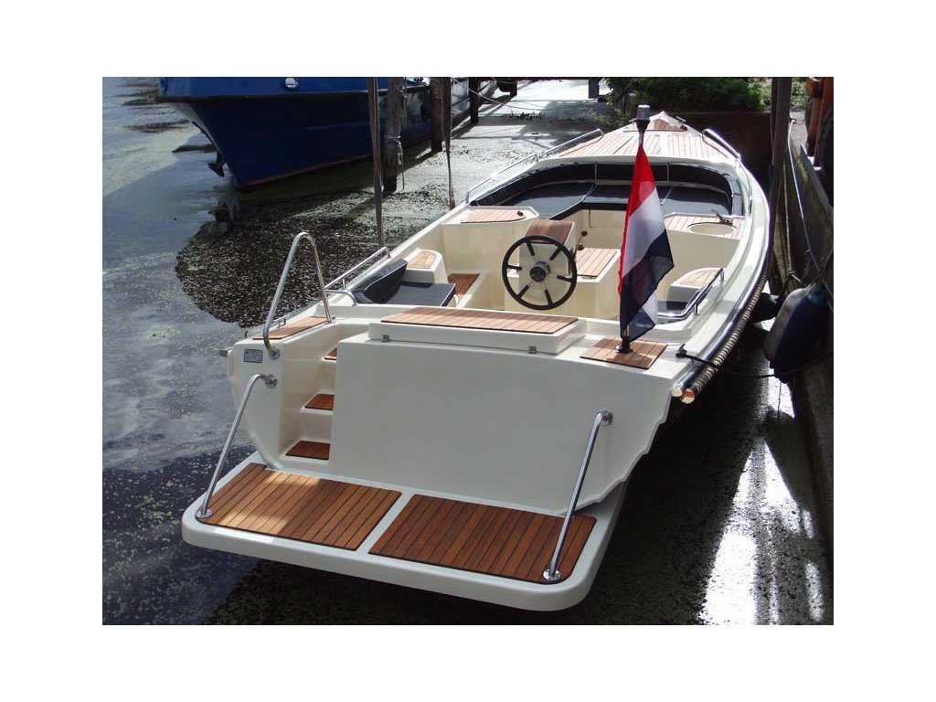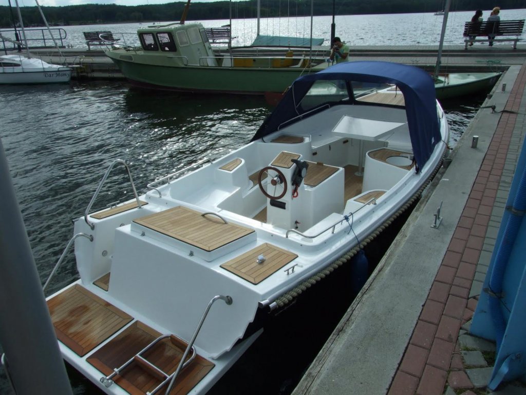 Příplatková výbava: možnost v jiném barevném provedení, hydraulický systém řízení, nerezový žebřík s dřevěnými schůdky, nerezová nebo plastová palivová nádrž, navigační osvětlení, dřevěný nebo sportovní volant, imitace teaku, bimini, přepravní plachta, kalová pumpa, stůl, rádio, repro,