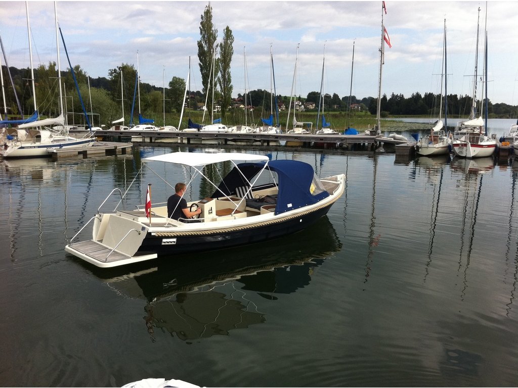Základní výbava: bílá barva, zábradlí, čalounění – imitace kůže z venku, mechanický systém řízení, nerezový volant, plošina ke koupání, provaz kolem lodi,