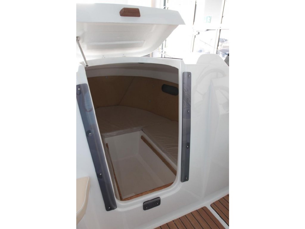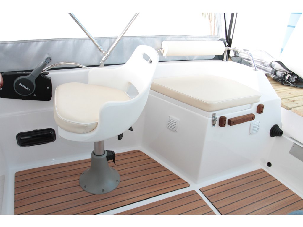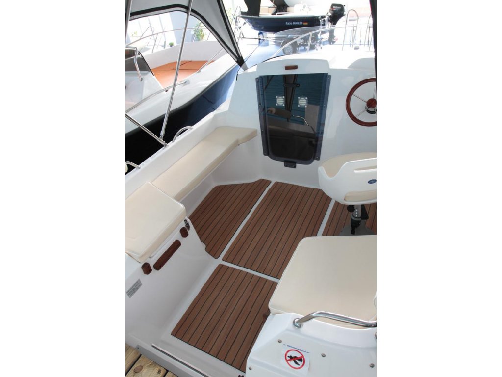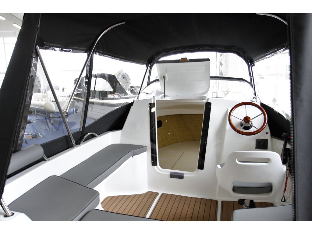 Příplatková výbava: možnost jiné barevné provedení, hydraulický systém řízení, plastová palivová nádrž, navigační osvětlení, čalounění Markilux ( lepší materiál ), nerezový, dřevěný nebo sportovní volant, imitace teaku, bimini, ozdobné lano kolem lodi, rádio + repro, stůl, přepravní plachta, nerezový žebřík s dřevěnými schůdky