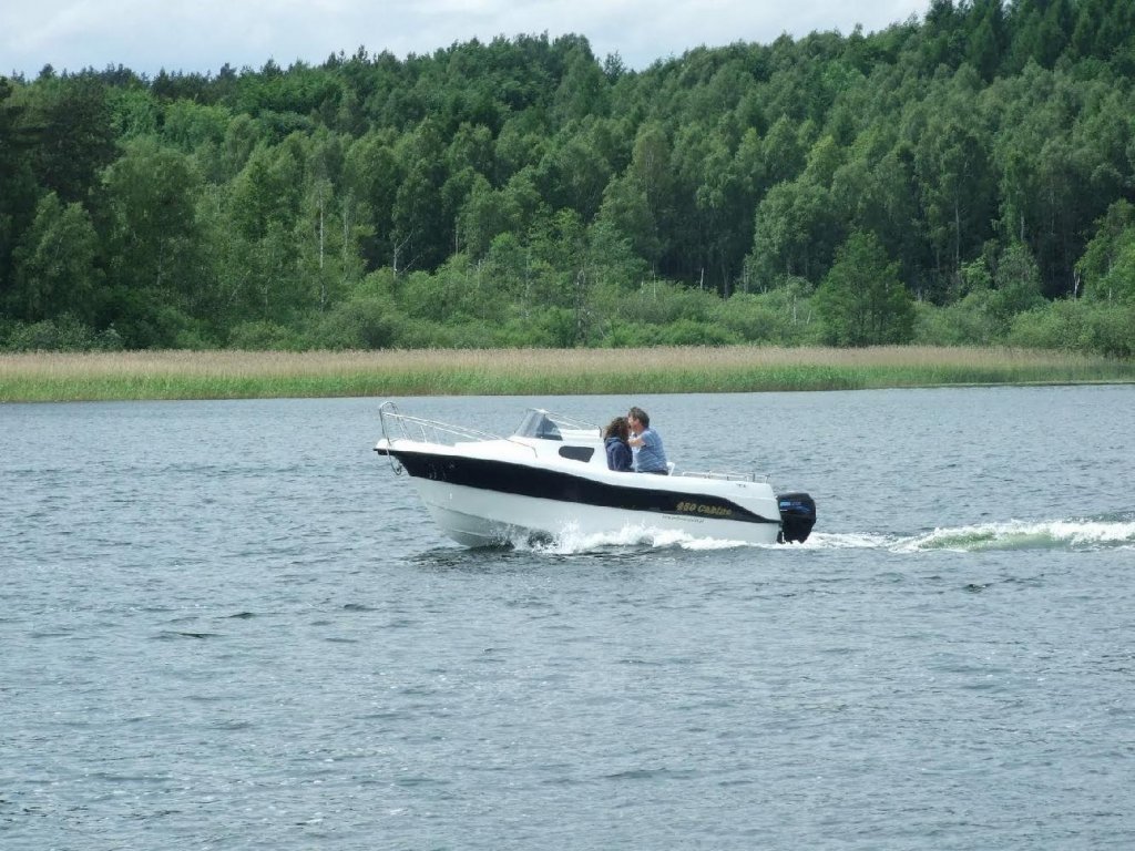 Motorový člun BT 450 Cabin – široká stabilní loď s malou kajutou pro dvě osoby a prostorným sezením v zádní části lodě. Loď je ideální pro rodinnou dovolenou, vodní sporty, výlety, rybaření a relax.