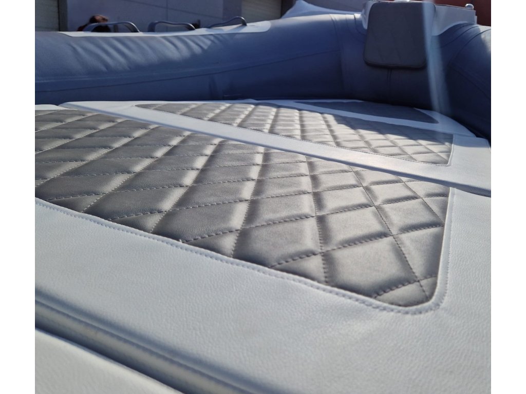 V ceně je zahrnuto: vyjmutelné přední ležení - sundeck včetně pohodlných matrací, konzole řízení s převodkou a bovdenem řízení, držák kotvy na přídi člunu, teakova vnitřní podlaha, rampa s osvětlením ( boční a vrcholové světlo ), nášlapy na zadních buřtech, pumpa, sada lepení.