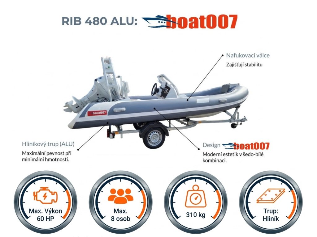 Nafukovací člun boat007 RIB 480 ALU Sundeck
