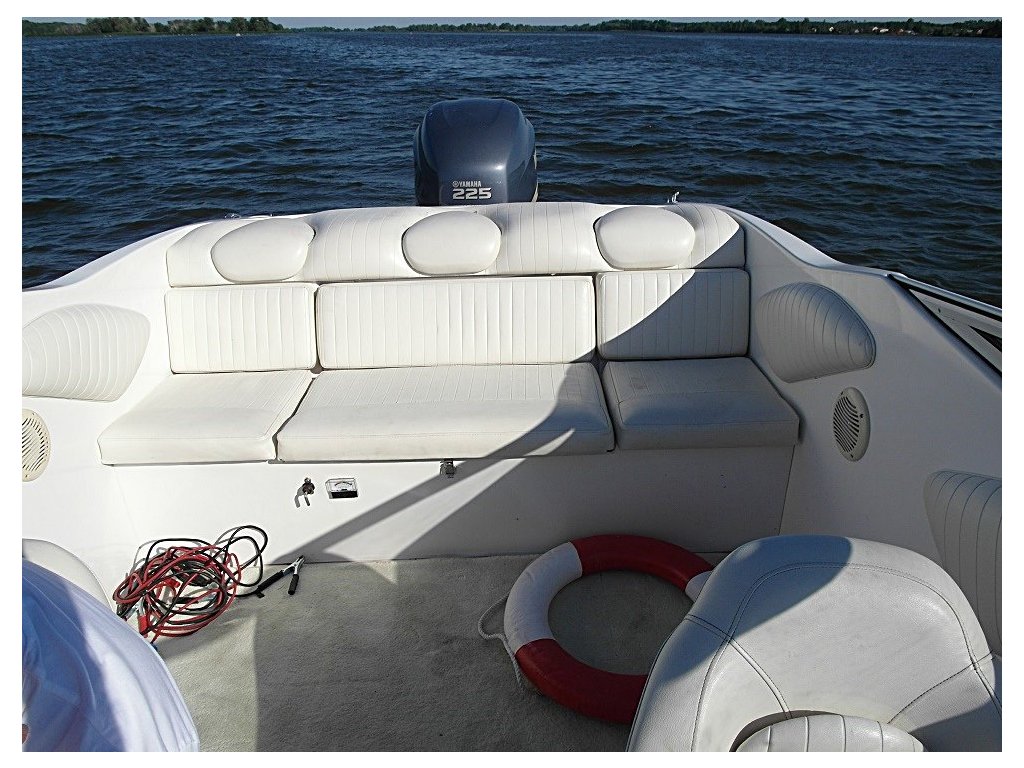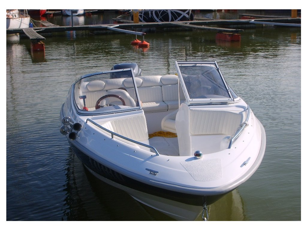 Základní výbava: bílá barva, čalounění skai ( imitace kůže ), dálkové řízení, nerezový žebřík s dřevěnými schůdky, 2x křeslo, nerezový volant, samovypouštěcí kokpit, vazáky.
